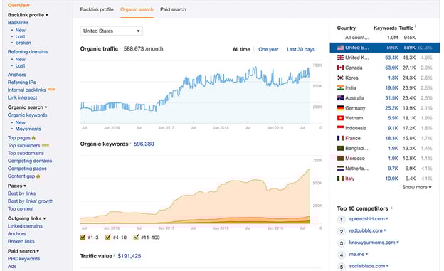 Here we have an example of the Ahrefs site explorer tool in action: