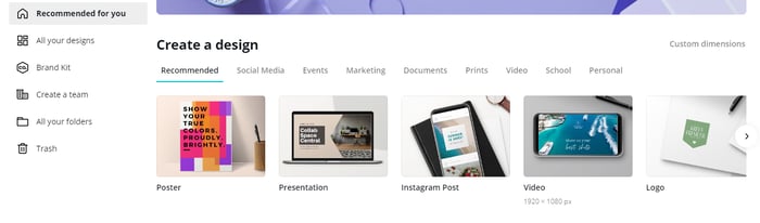 As you can see, Canva’s menu makes it easier than ever to start designing the image you need. Simply choose which template you want and Canva will size it accordingly, from full-size imagery down to Instagram thumbnails.