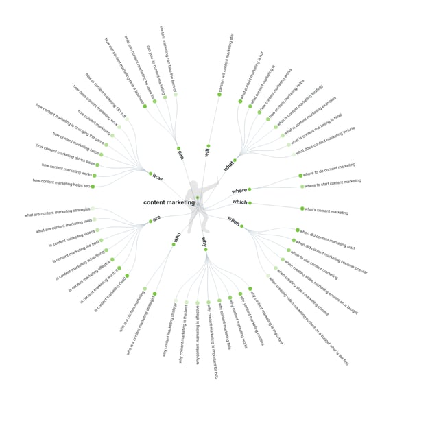 AnswerThePublic gives us the lowdown on what people are searching with the keywords “content marketing”. From here, it’s easy to come up with content ideas which answer the questions and solve the problems that your audience has.