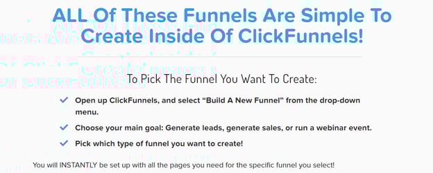 The simplicity behind ClickFunnels is the attraction factor here. Whether you want to create a funnel for more leads, more sales, or even an online event, ClickFunnels has all the templates to set you on the path of funnel creating success.